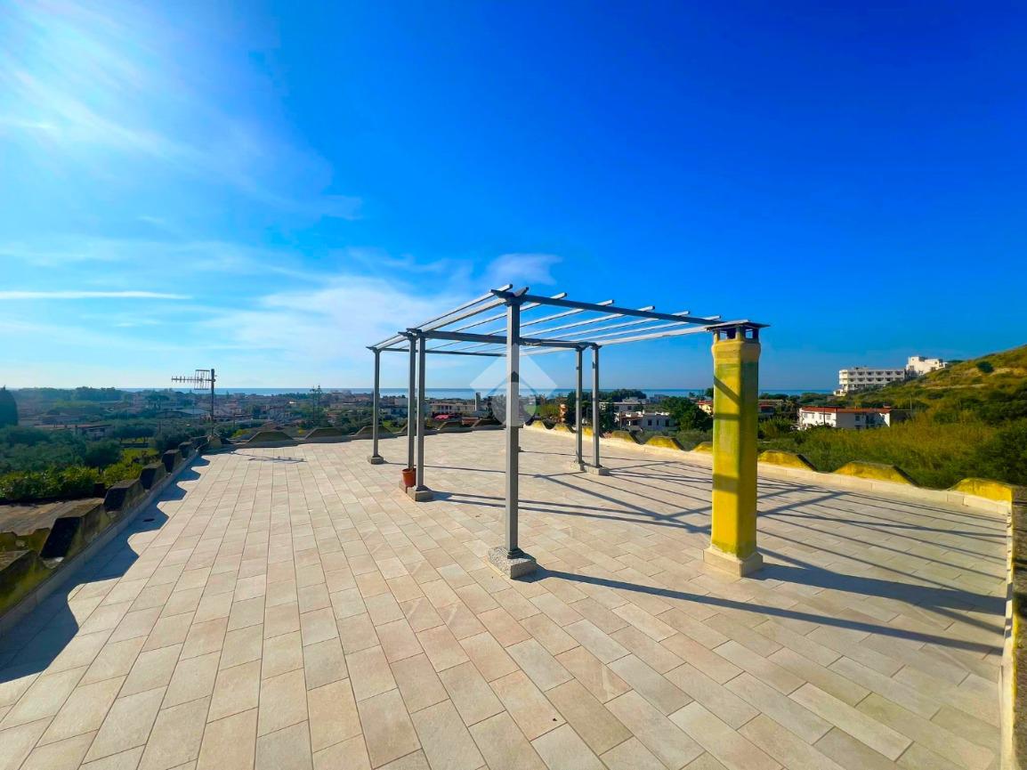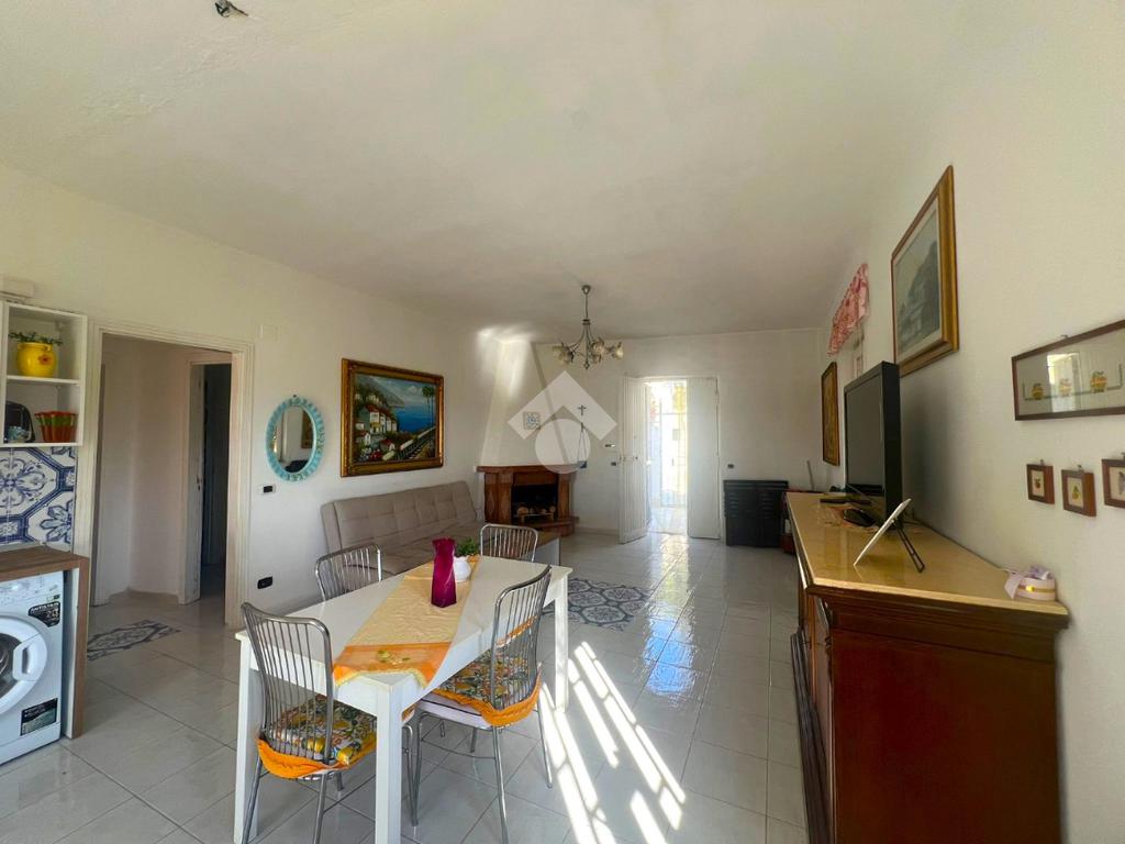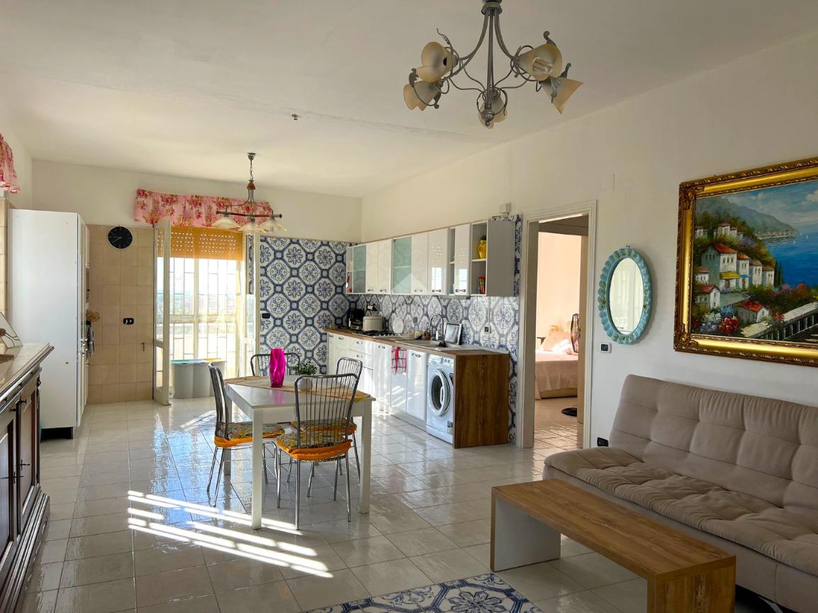 Proponiamo in vendita a Mondragone, precisamente in Via degli Uliveti, nella località S. Maria Incaldana, un appartamento indipendente recentemente ristrutturato . Situato in un palazzo di sole due unità, l'immobile gode di una doppia esposizione: ingresso diretto al piano terra sul lato principale e affaccio panoramico come primo piano sul retro, che permette di avere luce naturale per gran parte della giornata. Si compone di soggiorno con camino ed angolo cottura, camera matrimoniale, cameretta e due bagni. La cucina e la camera matrimoniale affacciano su un balcone vista mare, ideale per ammirare il paesaggio circostante. Completa la proprietà un piccolo spazio esterno, perfetto per momenti all'aperto, e un ampio terrazzo di copertura esclusivo , accessibile tramite scala esterna, che offre una vista panoramica sul golfo di Gaeta e sulle colline circostanti. L'immobile si trova a circa 700 metri dagli stabilimenti balneari, in una zona leggermente collinare, che garantisce tranquillità e privacy. Si presenta leggermente isolato dal centro, offrendo un'atmosfera che unisce il fascino della montagna e la vicinanza al mare.